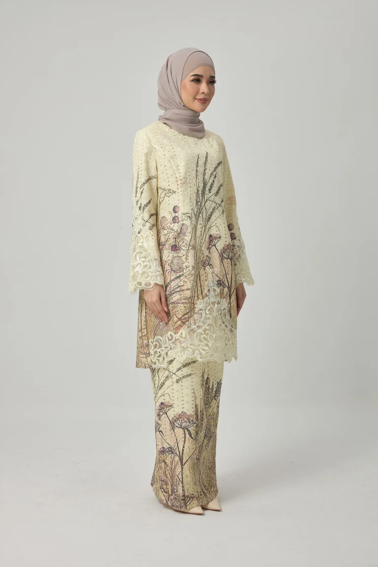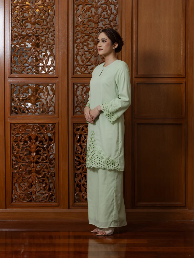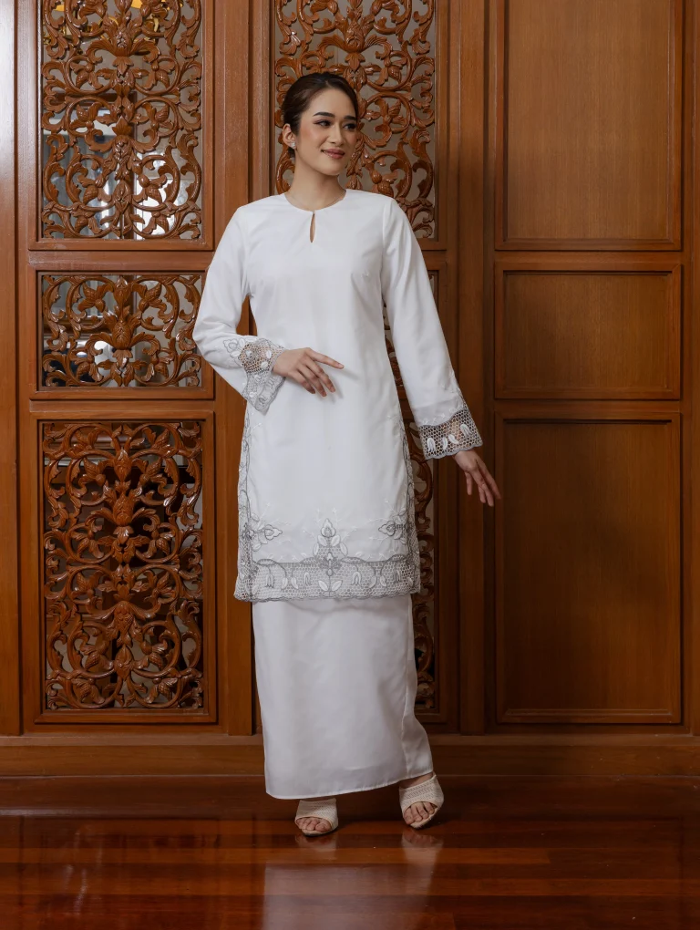 This kurung isn’t just a piece of clothing—it’s a celebration of tradition, beauty, and modernity. With its luxurious embroidery, intricate lace detailing, and elegant cut, it’s more than just an outfit—it’s a statement of refined taste. Add this timeless piece to your collection and embrace effortless elegance every day.